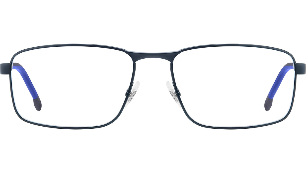 Occhiali da vista Carrera 8913 PJP uomo con montatura rettangolare in metallo blu e lenti demo. Carrera sceglie la fibra di carbonio per un occhiale da vista di qualità premium. Applica questo materiale leggero e resistente alle aste silm con design texturizzato. Aumentano il comfort i terminali gommati, con colorazione a contrasto oppure tono su tono. Lo sguardo è fisso sul traguardo dei propri obbietti, vestito dal frontale rettangolare in leggero acciaio inossidabile con naselli regolabili. Per uno stile concreto, senza fronzoli né distrazioni. Linea: Sport. Codice modello: 109526. Codice colore: PJP. Rivenditore autorizzato Carrera online. Gli occhiali vengono consegnati con custodia e accessori originali e sono coperti dalla garanzia ufficiale di 12 mesi del produttore.