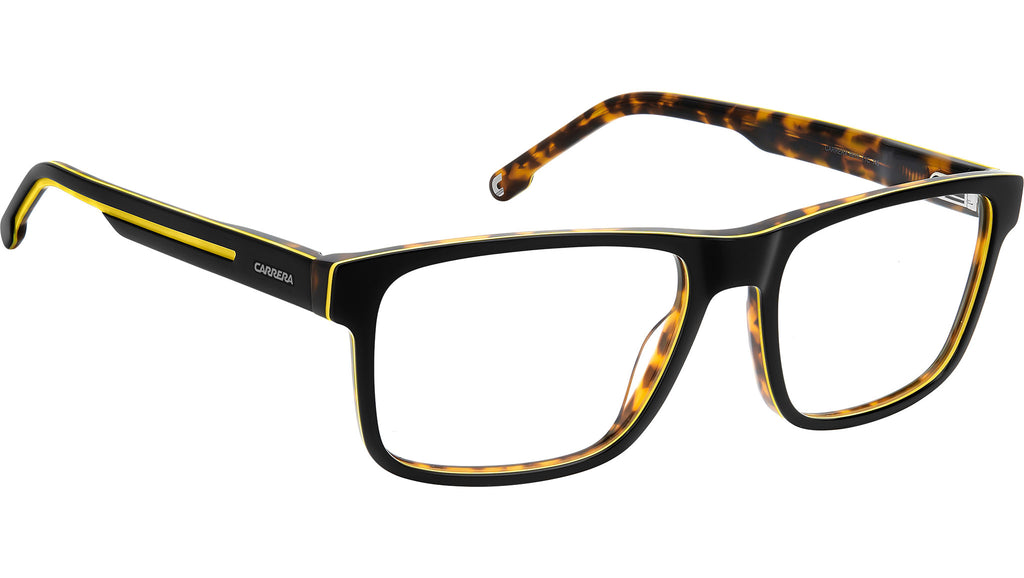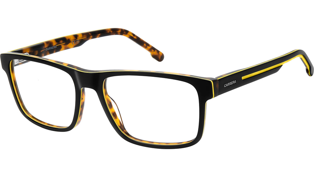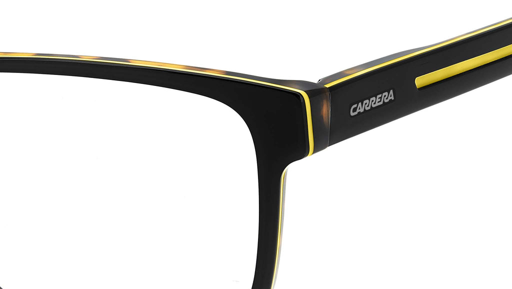 Occhiali da vista Carrera 8915 71C uomo con montatura rettangolare in acetato nero giallo e lenti demo. Carrera mette a segno un’altra vittoria di stile con un nuovo concept per gli occhiali da vista. Interamente in acetato, presentano aste con nuovo design scolpito nella flag simbolo di Carrera. Il frontale rettangolare sta bene alla maggior parte dei volti, mentre le cerniere flessibili promettono di adattarsi alla fisionomia di ciascuno. Questo accessorio è incredibilmente attuale, e molto portabile: completa i look casual, aggiunge un tocco personale a quelli più formali. Linea: Sport. Codice modello: 109535. Codice colore: 71C. Rivenditore autorizzato Carrera online. Gli occhiali vengono consegnati con custodia e accessori originali e sono coperti dalla garanzia ufficiale di 12 mesi del produttore.