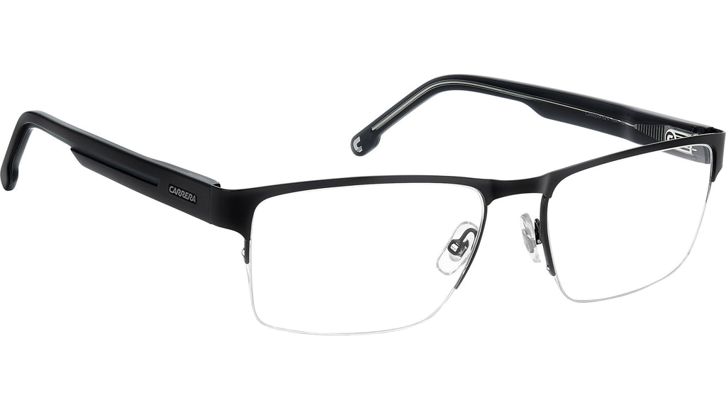 Occhiali da vista Carrera 8914 08A uomo con montatura rettangolare in metallo nero grigio e lenti demo. Carrera prende molto sul serio il comfort e la versatilità: il risultato è questo occhiale da vista con frontale a mezza montatura. La vestibilità è personalizzata grazie a naselli regolabili, cerniere flessibili e la possibilità di scegliere tra due diversi calibri. Lo stile è definito dalle nuove aste in acetato, scolpite a mimare la flag Carrera. Da scegliere tono su tono, blu, oppure in rosso - colore simbolo Carrera. Linea: Sport. Codice modello: 109536. Codice colore: 08A. Rivenditore autorizzato Carrera online. Gli occhiali vengono consegnati con custodia e accessori originali e sono coperti dalla garanzia ufficiale di 12 mesi del produttore.