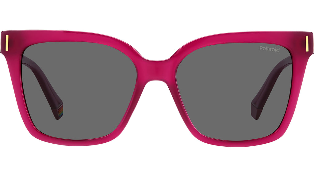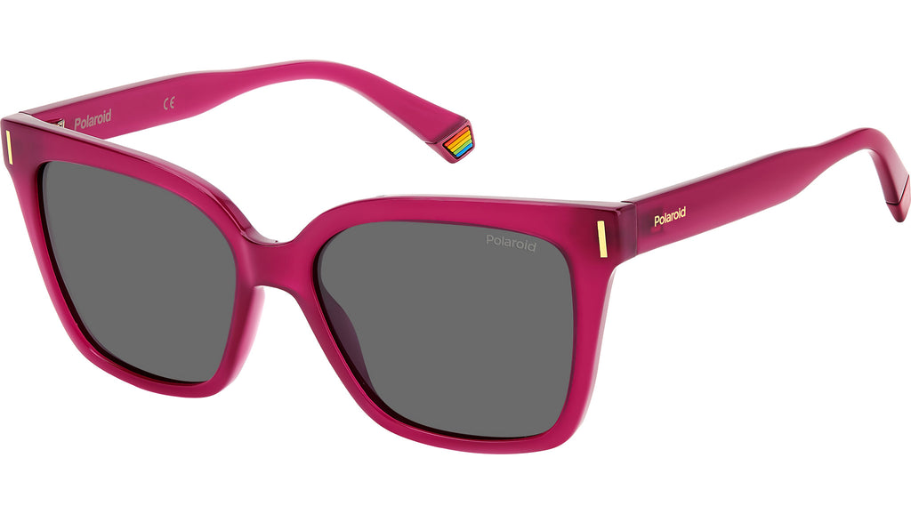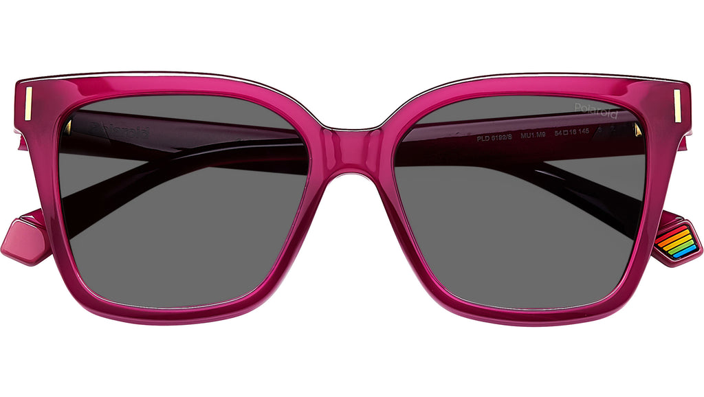 Occhiali da sole Polaroid PLD 6192/S MU1 M9 donna con montatura in policarbonato fucsia e lenti grigio polarizzate. Sono occhiali da sole con montatura in policarbonato e frontale cat-eye caratterizzato da rivetti in metallo incastonati nell’angolo superiore esterno. Le aste di questi occhiali da donna Polaroid sono affusolate verso i terminali, che si distinguono con il classico inserto arcobaleno, uno dei simboli del marchio. Linea: Cool. Codice modello: 205689. Codice colore: MU1 M9. Rivenditore autorizzato Polaroid online. Gli occhiali vengono consegnati con custodia e accessori originali e sono coperti dalla garanzia ufficiale di 12 mesi del produttore.