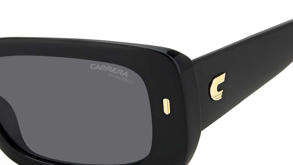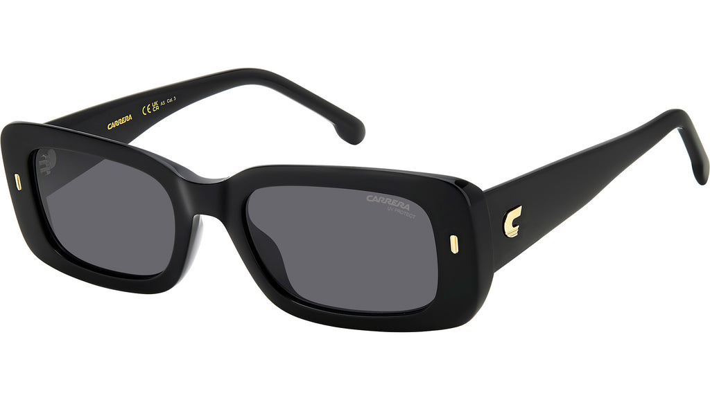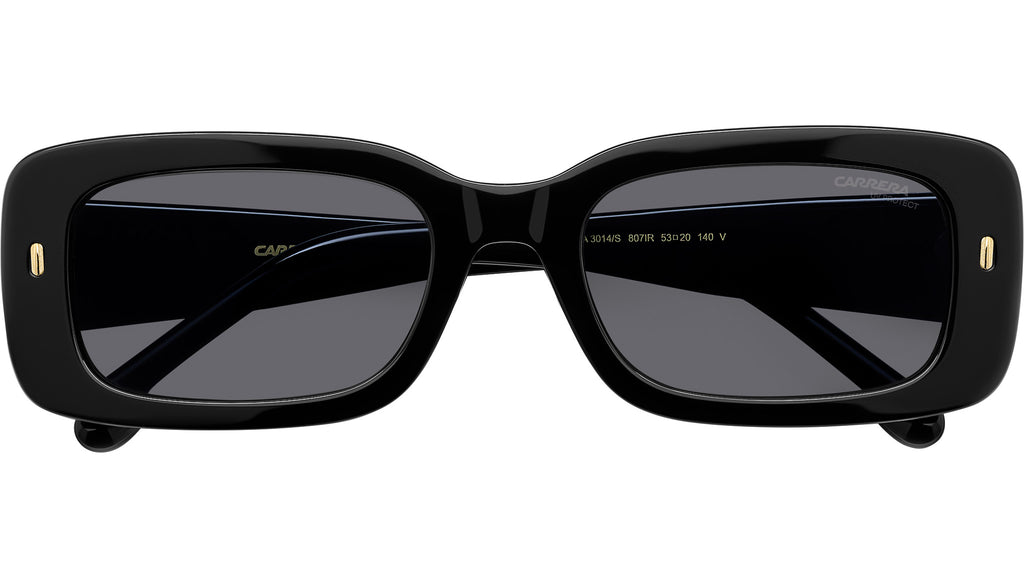 Occhiali da sole Carrera 3014/S 807 IR donna con montatura rettangolare in acetato nero e lenti demo. Non passa inosservata la shape rettangolare di un occhiale da sole Carrera per donna. Presenta infatti profili audaci in acetato, accesi dell’elegante rivetto sul frontale e dalla “C” in rilievo sulle aste. Il modello è personalizzabile con lenti da sole graduate e si presenta anche in versione trasparente, multistrato e havana colorata. Linea: Flag. Codice modello: 206324. Codice colore: 807 IR. Rivenditore autorizzato Carrera online. Gli occhiali vengono consegnati con custodia e accessori originali e sono coperti dalla garanzia ufficiale di 12 mesi del produttore.