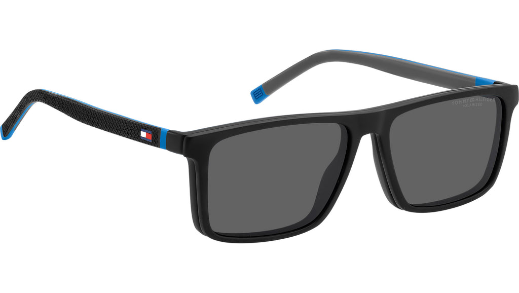 Occhiali da sole Tommy Hilfiger TH 2086/CS 003 M9 uomo con montatura rettangolare in nylon nero opaco e lenti grigio polarizzate. Ispirazione sportiva per Tommy Hilfiger con lenti da sole clip-on polarizzate. Una montatura iniettata unisce un frontale rettangolare con flat-top ad aste gommate con texture Polo Pique. La costruzione multistrato permette un gioco di colori che aggiunge grinta sportiva, mentre il brand è esplicitato dalla bandiera sulle aste. Le lenti clip-on si applicano in un gesto, per proteggere gli occhi nelle giornate di sole. Linea: Sporty. Codice modello: 206774. Codice colore: 003 M9. Rivenditore autorizzato Tommy Hilfiger online. Gli occhiali vengono consegnati con custodia e accessori originali e sono coperti dalla garanzia ufficiale di 12 mesi del produttore.