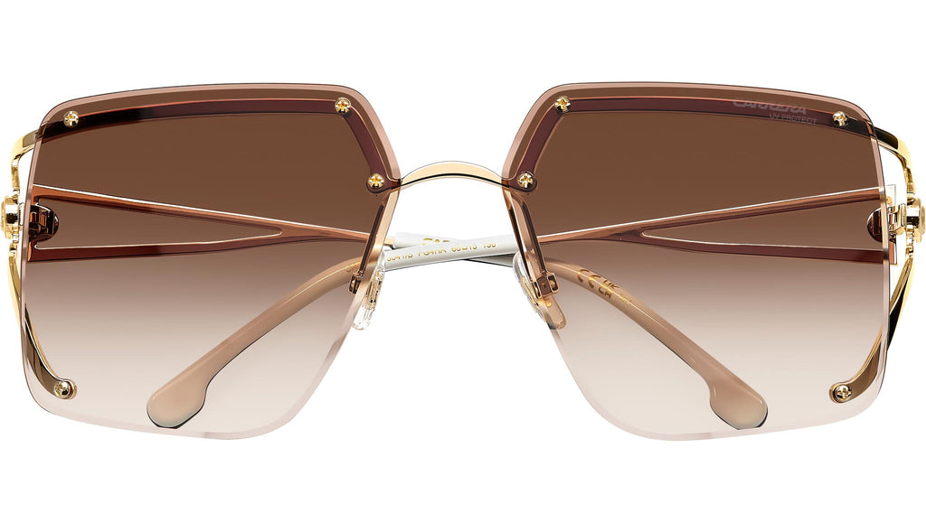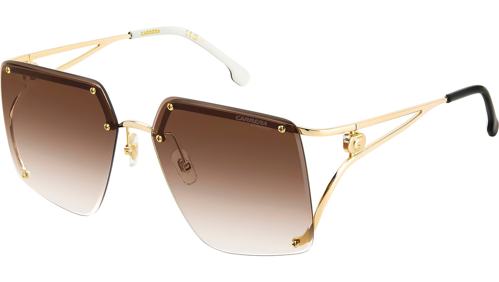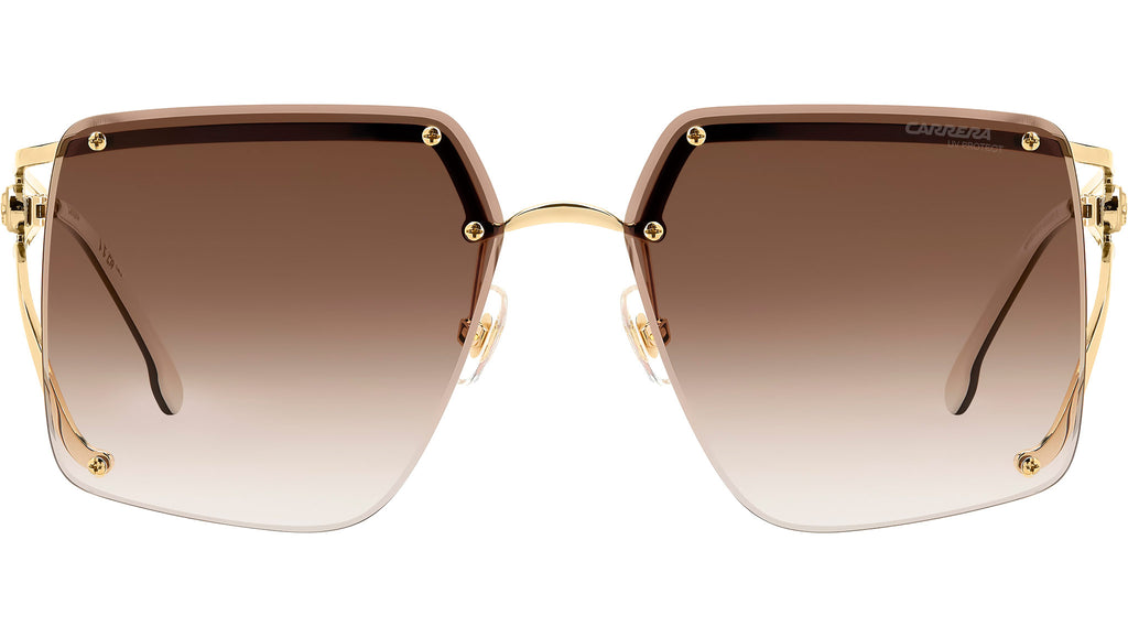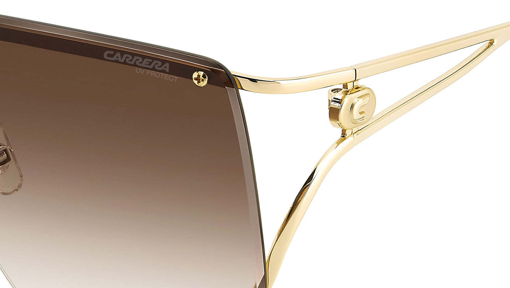 Occhiali da sole Carrera 3041/S FG4 HA donna con montatura quadrata in metallo marrone oro e lenti demo. Le estimatrici del carattere Carrera rimarranno conquistate da un occhiale da sole per lei. Le lenti sono sfumate e rimless, letteralmente ipnotiche e protagoniste. Nessun dettaglio è lasciato al caso: le viti che agganciano il ponte e le aste sono funzionali e decorative. Indimenticabile il design a forchetta delle aste, impreziosito dal logo sospeso con la “C” in rilievo. Le cromie sofisticate completano questo accessorio inconfondibilmente Carrera. Linea: Flag. Codice modello: 206829. Codice colore: FG4 HA. Rivenditore autorizzato Carrera online. Gli occhiali vengono consegnati con custodia e accessori originali e sono coperti dalla garanzia ufficiale di 12 mesi del produttore.