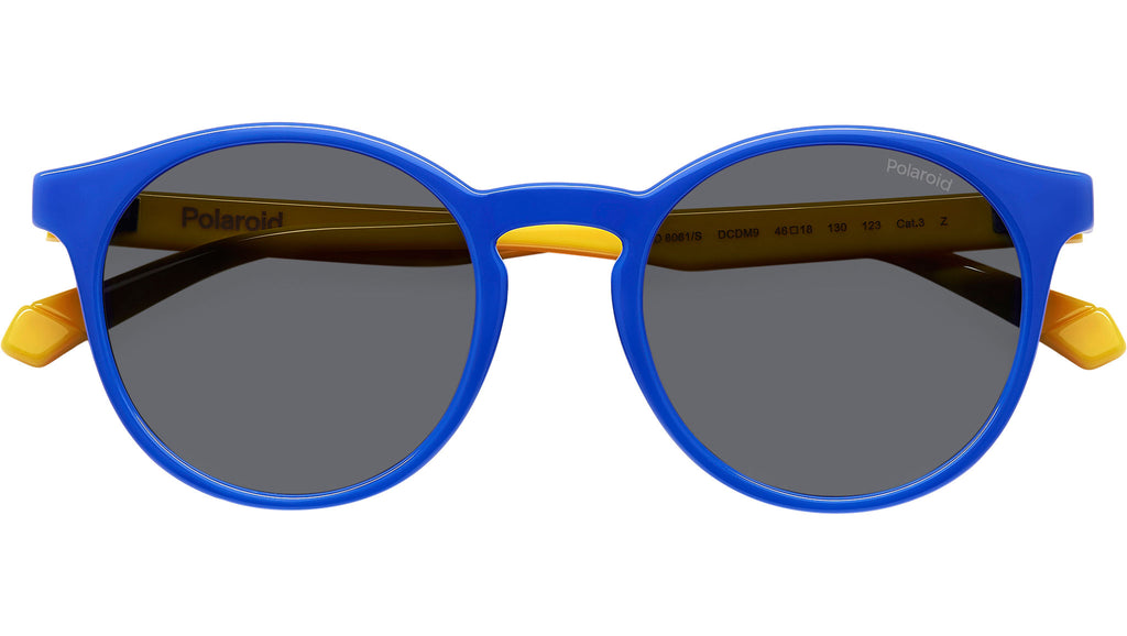 Occhiali da sole Polaroid Kids PLD 8061/S DCD M9 junior con montatura in policarbonato blu giallo e lenti grigio polarizzate. Occhiali da sole Polaroid di forma pantos dedicati a bambini e bambine dai 7 ai 10 anni di età. Pensati per un look giocoso, sono caratterizzati da colori vivaci declinati in proposte bi-color o con pattern grafico. Sono l’alleato perfetto nelle giornate all’aria aperta: la costruzione in policarbonato è leggera, mentre le lenti polarizzate proteggono dai raggi UV e offrono una visione definita. Linea: Kids. Codice modello: 207385. Codice colore: DCD M9. Rivenditore autorizzato Polaroid Kids online. Gli occhiali vengono consegnati con custodia e accessori originali e sono coperti dalla garanzia ufficiale di 12 mesi del produttore.