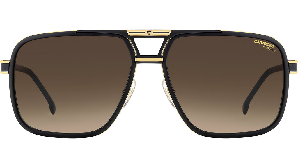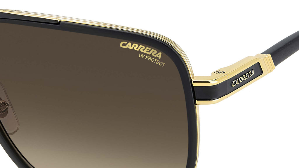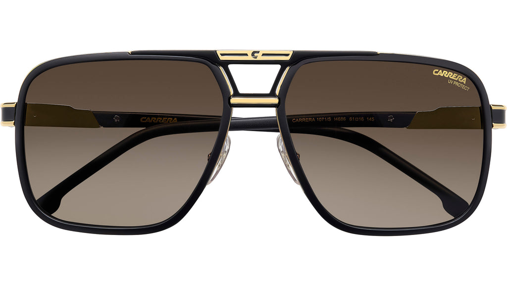Occhiali da sole Carrera 1071/S I46 86 uomo con montatura rettangolare in metallo nero opaco oro e lenti demo. Il carattere deciso di Carrera è espresso da un occhiale da sole. Il fontale navigator è un classico del brand, qui con rivestimento in poliammide iniettata e doppio ponte firmato dal logo “C”. Le aste in metallo presentano il logo scolpito in rilievo e terminali lunghi in acetato. Massima libertà di utilizzo grazie alle cerniere flessibili e alla possibilità di montare lenti graduate. Il modello arriva anche in versione polarizzata. Linea: Flag. Codice modello: 207560. Codice colore: I46 86. Rivenditore autorizzato Carrera online. Gli occhiali vengono consegnati con custodia e accessori originali e sono coperti dalla garanzia ufficiale di 12 mesi del produttore.