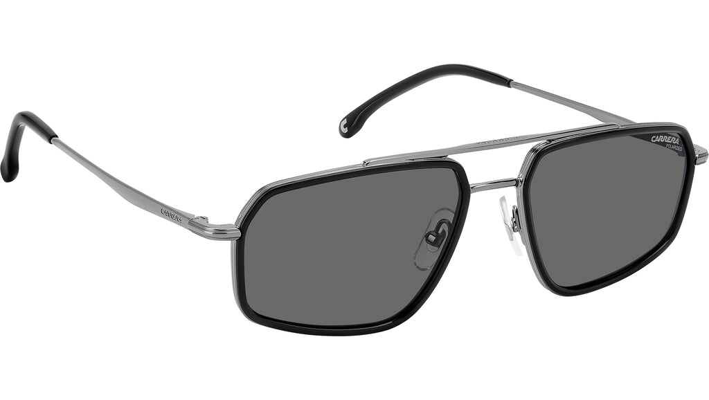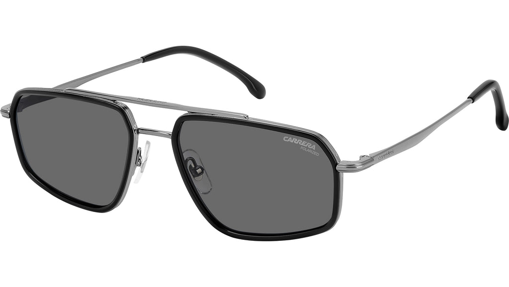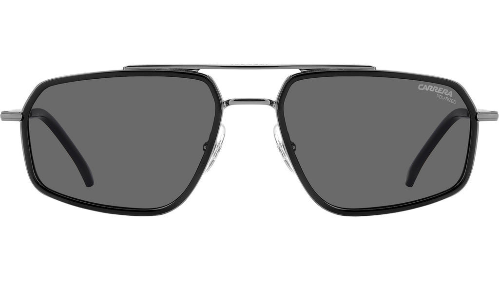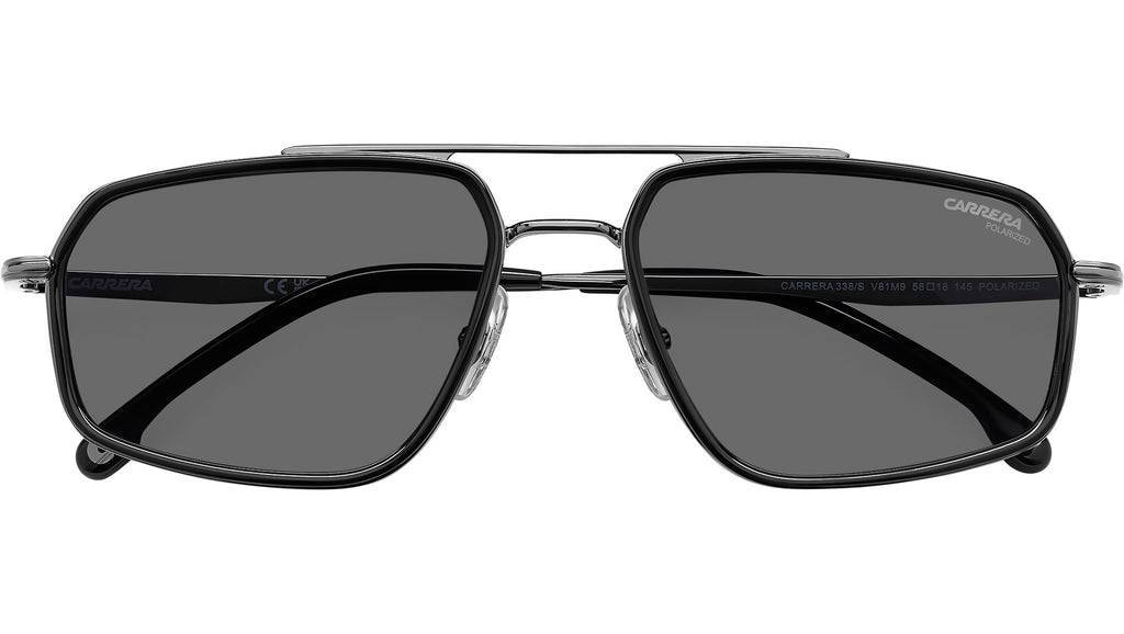 Occhiali da sole Carrera 338/S V81 M9 uomo con montatura aviatore in metallo nero rutenio scuro e lenti demo. Gli occhiali da sole Carrera sono destinati ad entrare nei cuori – e nel guardaroba – di molti. A renderli iconici è la montatura minimale in metallo, arricchita dal rivestimento iniettato sul frontale in rima cromatica con i terminali. Ulteriori elementi caratterizzanti: il doppio ponte, le aste a pinna e la possibilità di montare lenti graduate. Il modello arriva anche nella variante con terminali multistrato oppure con lenti polarizzate. Linea: Signature. Codice modello: 207602. Codice colore: V81 M9. Rivenditore autorizzato Carrera online. Gli occhiali vengono consegnati con custodia e accessori originali e sono coperti dalla garanzia ufficiale di 12 mesi del produttore.