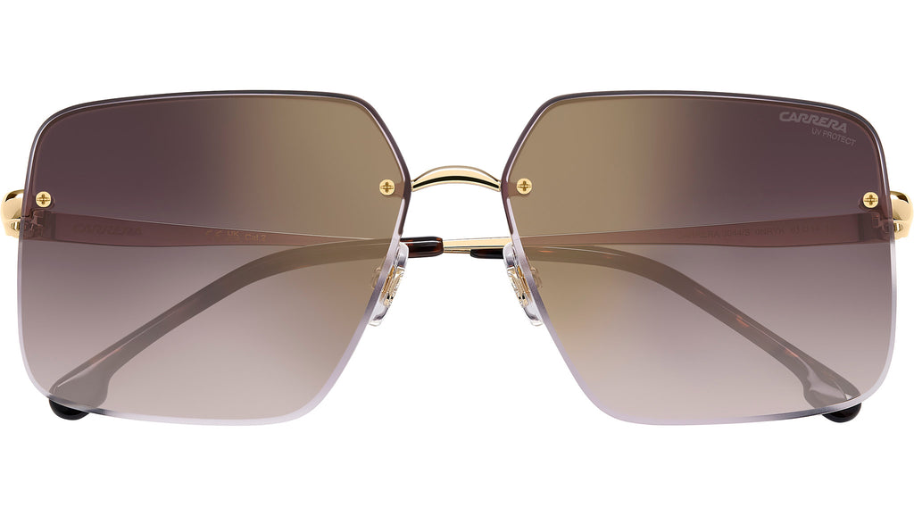 Occhiali da sole Carrera 3044/S 0NR YK donna con montatura rettangolare in metallo oro marrone avana e lenti demo. Design minimal e dettagli tutt’altro che ordinari per un occhiale da sole donna firmati Carrera. Protagoniste sono le lenti da sole sfumate, plasmate in una variante moderna della forma squadrata, agganciate alla struttura da estetiche viti a vista. Il modello è interamente in metallo, leggero grazie alle linee slim, stabile sul volto grazie ai naselli regolabili. La “C” laserata sulle aste firma questo modello femminile ma fedele al DNA Carrera. Linea: Flag. Codice modello: 207623. Codice colore: 0NR YK. Rivenditore autorizzato Carrera online. Gli occhiali vengono consegnati con custodia e accessori originali e sono coperti dalla garanzia ufficiale di 12 mesi del produttore.