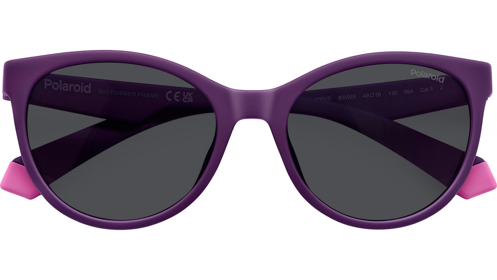 Occhiali da sole Polaroid Kids PLD 8065/S B3V M9 junior con montatura in gomma eco viola e lenti grigio polarizzate. Linee sinuose e colori vibranti per questi occhiali da sole per bambine dai 7 ai 10 anni di età. Non serve un’occasione speciale, questo modello si sfoggia sempre. Merito della montatura gommata, flessibile ed elastica, resistente anche ai momenti di maggiore vivacità. Le lenti rotonde arrivano anche in versione multistrato, sempre polarizzate. Lo stile si ispira ai modelli da donna, per costruire insieme un look coordinato da documentare con tenerissimi selfie. Linea: Kids. Codice modello: 207819. Codice colore: B3V M9. Rivenditore autorizzato Polaroid Kids online. Gli occhiali vengono consegnati con custodia e accessori originali e sono coperti dalla garanzia ufficiale di 12 mesi del produttore.