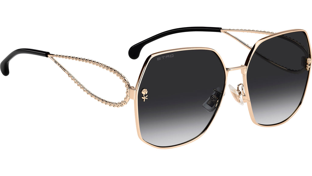 Occhiali da sole Etro 0071/F/S 000 9O donna con montatura squadrata in metallo oro rosa e lenti in CR-39 grigio scuro sfumato. Un omaggio alla creatività e all'arte, questi occhiali da sole ETRO prendono ispirazione dalla collezione di gioielli del brand. La silhouette in metallo, leggera ed essenziale, è arricchita da aste scultoree lavorate con una tecnica di cesellatura innovativa che dona un effetto tridimensionale. Il motivo Paisley, reinterpretato nelle aste arrotondate, assicura un comfort quotidiano, mentre i dettagli floreali e il logo brillante completano un design che unisce raffinatezza e funzionalità. Linea: Etromania. Codice modello: 207873. Codice colore: 000 9O. Rivenditore autorizzato Etro online. Gli occhiali vengono consegnati con custodia e accessori originali e sono coperti dalla garanzia ufficiale di 12 mesi del produttore.