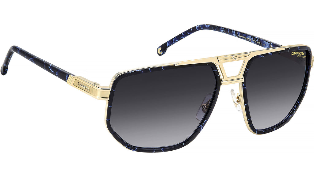Occhiali da sole Carrera 1072/S KY2 9O uomo con montatura aviatore in metallo blu oro e lenti demo. Lo stile potente di Carrera si esprime in un occhiale da sole. Il frontale è un exploit di dettagli: costruzione in acciaio inossidabile, rivestimento in acetato, ponte e doppio ponte con la flag orizzontale. Le aste non sono da meno, riconoscibili grazie alla firma ben evidente. Numerose le varianti proposte, tra cui quelle bi-color, trasparente ed effetto marmo, con lenti polarizzate oppure specchiate. Linea: Flag. Codice modello: 207885. Codice colore: KY2 9O. Rivenditore autorizzato Carrera online. Gli occhiali vengono consegnati con custodia e accessori originali e sono coperti dalla garanzia ufficiale di 12 mesi del produttore.