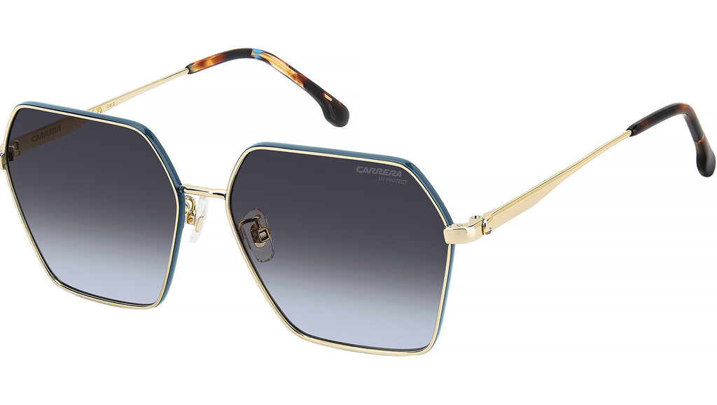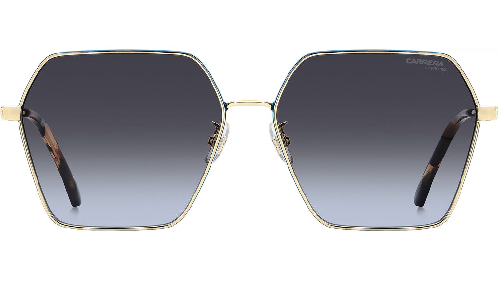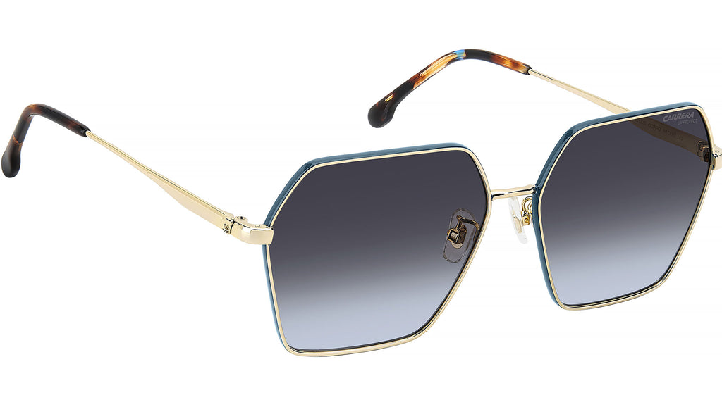 Occhiali da sole Carrera 3057/S OGA 9O donna con montatura rettangolare in metallo oro verde acqua e lenti demo. Carrera sa come rendere unici gli occhiali da sole. Questo modello per donna sorprende con un frontale di forma esagonale. Il profilo è smaltato nelle nuance del momento, in tinta con le lenti. Queste ultime sono sfumate, disponibili anche specchiate. La struttura è leggerissima, i naselli sono regolabili. Linea: Signature. Codice modello: 207886. Codice colore: OGA 9O. Rivenditore autorizzato Carrera online. Gli occhiali vengono consegnati con custodia e accessori originali e sono coperti dalla garanzia ufficiale di 12 mesi del produttore.
