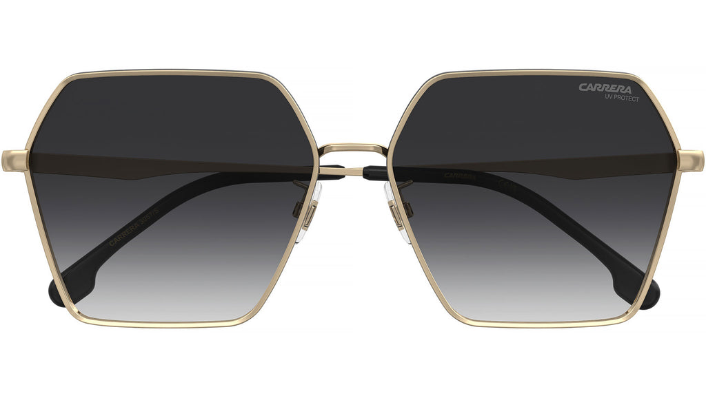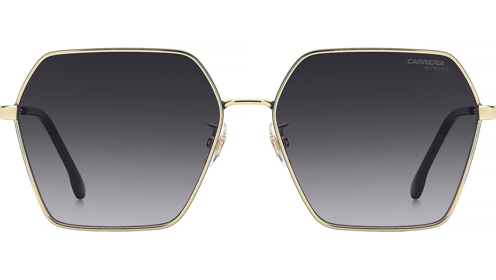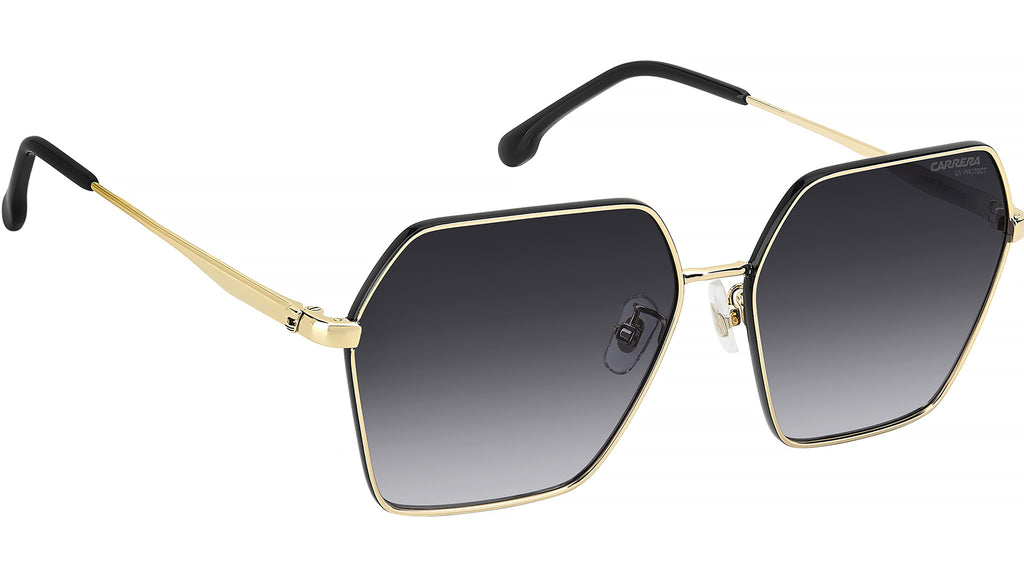 Occhiali da sole Carrera 3057/S RHL 9O donna con montatura rettangolare in metallo oro nero e lenti demo. Carrera sa come rendere unici gli occhiali da sole. Questo modello per donna sorprende con un frontale di forma esagonale. Il profilo è smaltato nelle nuance del momento, in tinta con le lenti. Queste ultime sono sfumate, disponibili anche specchiate. La struttura è leggerissima, i naselli sono regolabili. Linea: Signature. Codice modello: 207886. Codice colore: RHL 9O. Rivenditore autorizzato Carrera online. Gli occhiali vengono consegnati con custodia e accessori originali e sono coperti dalla garanzia ufficiale di 12 mesi del produttore.