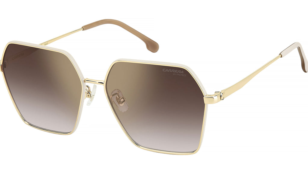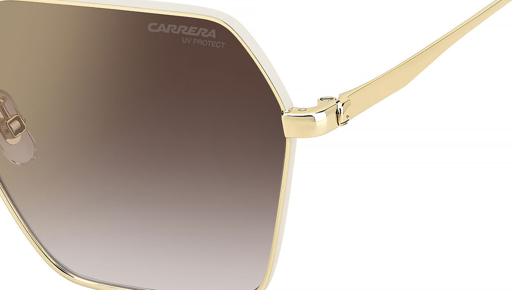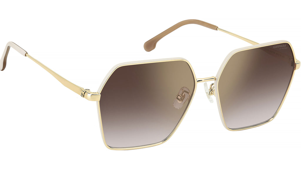 Occhiali da sole Carrera 3057/S VVP YK donna con montatura rettangolare in metallo oro avorio e lenti demo. Carrera sa come rendere unici gli occhiali da sole. Questo modello per donna sorprende con un frontale di forma esagonale. Il profilo è smaltato nelle nuance del momento, in tinta con le lenti. Queste ultime sono sfumate, disponibili anche specchiate. La struttura è leggerissima, i naselli sono regolabili. Linea: Signature. Codice modello: 207886. Codice colore: VVP YK. Rivenditore autorizzato Carrera online. Gli occhiali vengono consegnati con custodia e accessori originali e sono coperti dalla garanzia ufficiale di 12 mesi del produttore.