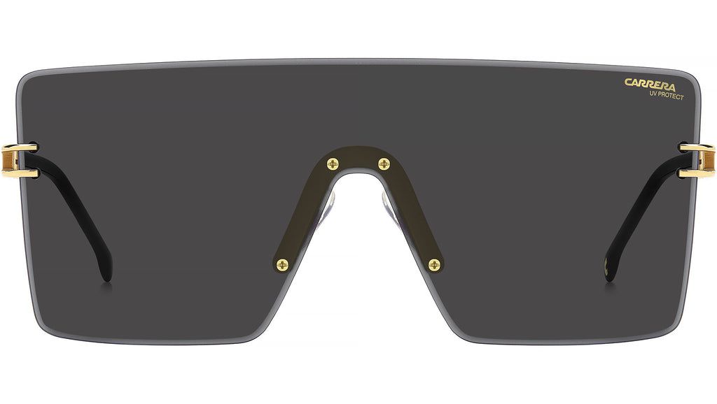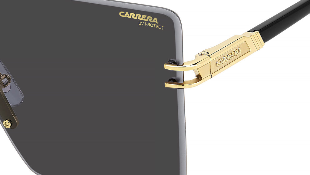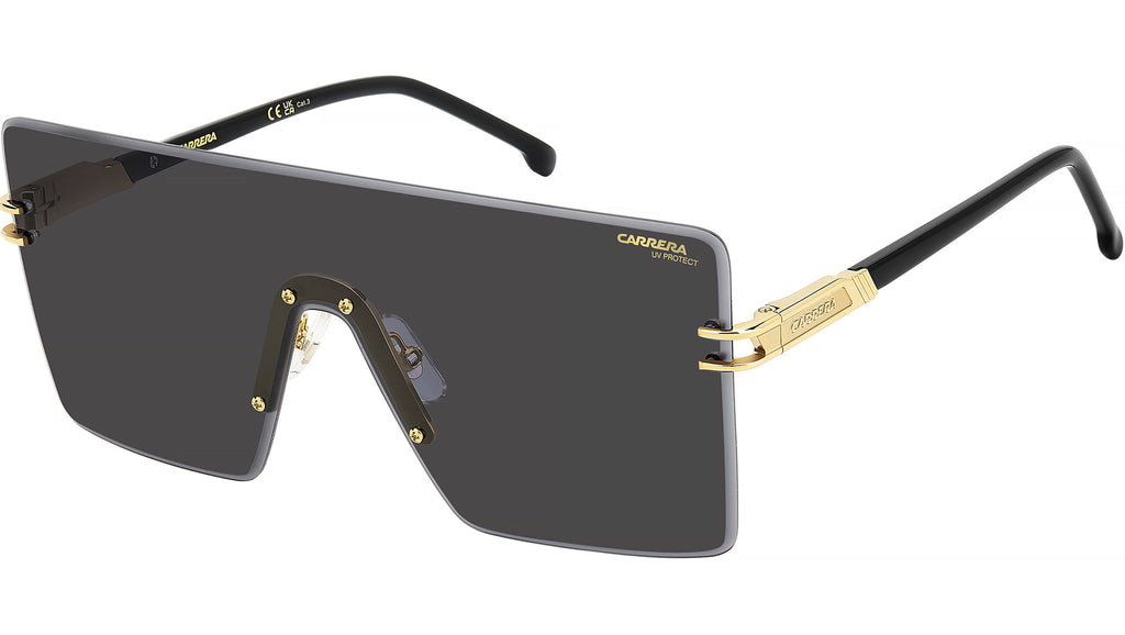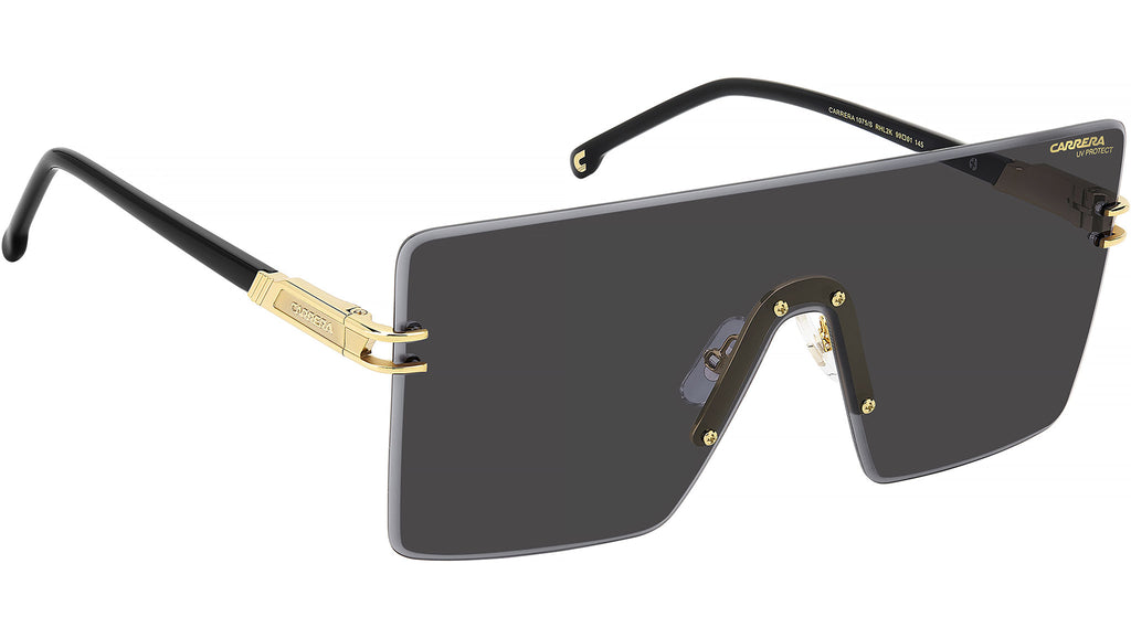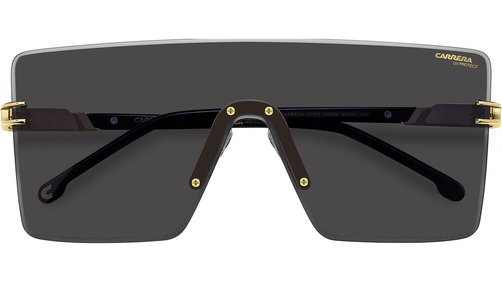 Occhiali da sole Carrera 1075/S RHL 2K donna con montatura mascherina in metallo oro nero e lenti demo. Unicità a prima vista. un occhiale da sole per lei hanno un frontale a maschera rimless: un’unica lente squadrata, con viti a vista funzionali e bellissime. Da notare le aste iconiche, tipiche Carrera, con logo in rilievo e terminali in acetato – anche trasparenti. Le cerniere flessibili rendono il fit confortevole e sempre on-point. Disponibile anche in versione specchiata. Linea: Flag. Codice modello: 207889. Codice colore: RHL 2K. Rivenditore autorizzato Carrera online. Gli occhiali vengono consegnati con custodia e accessori originali e sono coperti dalla garanzia ufficiale di 12 mesi del produttore.