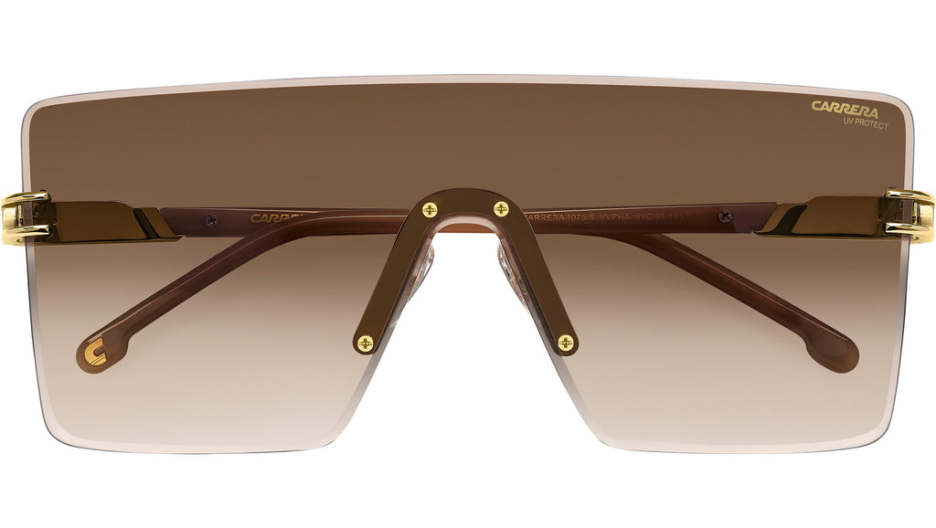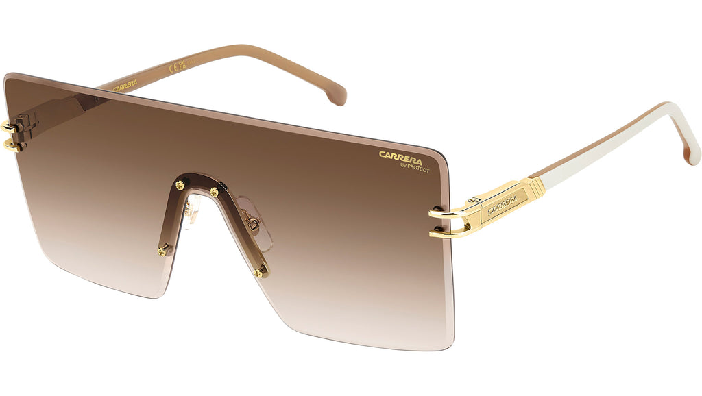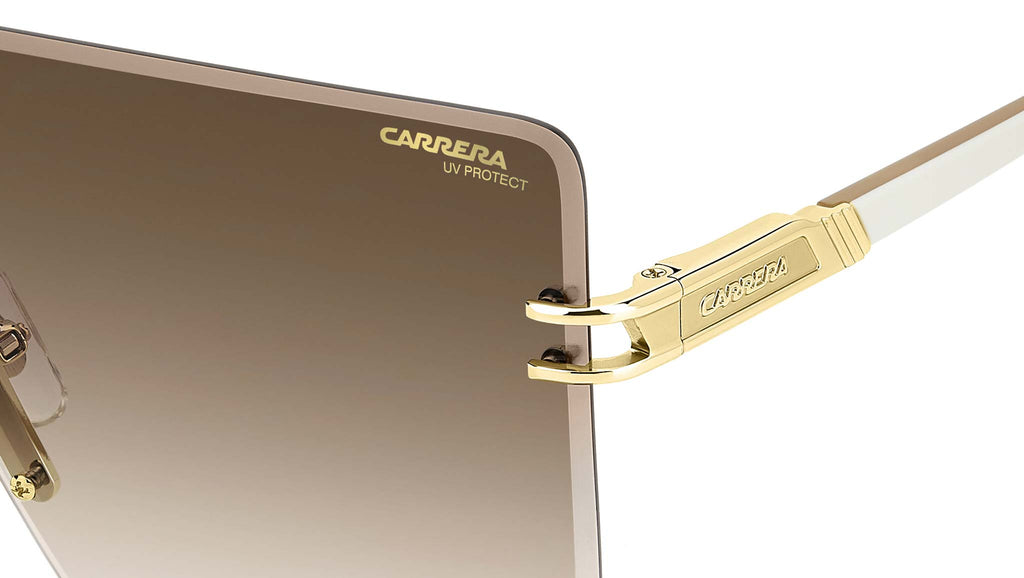 Occhiali da sole Carrera 1075/S VVP HA donna con montatura mascherina in metallo oro avorio e lenti demo. Unicità a prima vista. un occhiale da sole per lei hanno un frontale a maschera rimless: un’unica lente squadrata, con viti a vista funzionali e bellissime. Da notare le aste iconiche, tipiche Carrera, con logo in rilievo e terminali in acetato – anche trasparenti. Le cerniere flessibili rendono il fit confortevole e sempre on-point. Disponibile anche in versione specchiata. Linea: Flag. Codice modello: 207889. Codice colore: VVP HA. Rivenditore autorizzato Carrera online. Gli occhiali vengono consegnati con custodia e accessori originali e sono coperti dalla garanzia ufficiale di 12 mesi del produttore.