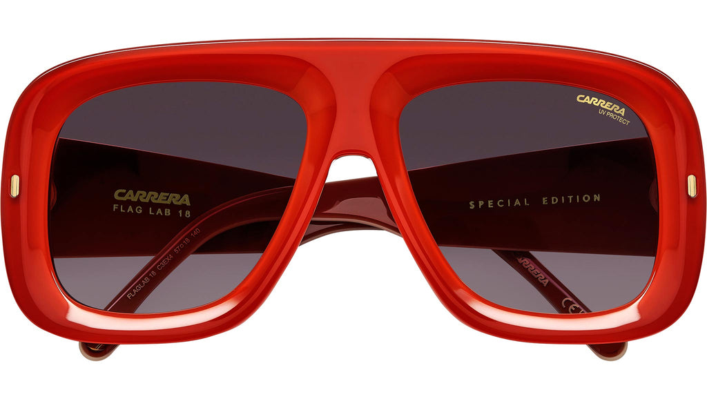 Occhiali da sole Carrera FLAGLAB 18 C3E X4 donna con montatura quadrata in acetato arancio oro e lenti demo. Un occhiale da sole da donna, in edizione speciale, che esprime il DNA Carrera. Il frontale è immediatamente riconoscibile, con volumi bold e lavorazione multistrato dall’effetto bi-color. Massima espressione di design, le aste con la “C” ottenuta da pressatura - lavorazione esclusiva di questa montatura. Il modello arriva con pack dedicato, e si può scegliere anche in versione specchiata. Linea: Flag. Codice modello: 207890. Codice colore: C3E X4. Rivenditore autorizzato Carrera online. Gli occhiali vengono consegnati con custodia e accessori originali e sono coperti dalla garanzia ufficiale di 12 mesi del produttore.