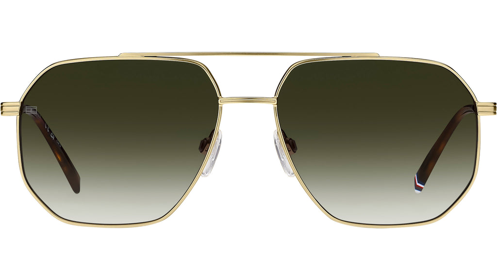 Occhiali da sole Tommy Hilfiger TH 2191/S AOZ 9K uomo con montatura rettangolare in metallo oro opaco e lenti verde sfumato. Occhiali da sole Tommy Hilfiger di ispirazione preppy, lo stile collegiale nato in America. L’estetica casual-chic è qui aggiornata da dettagli attuali, come il doppio ponte che caratterizza il frontale. La bandiera del brand decora le aste ed è replicata sulla punta del terminale sinistro. Forme e materiali lavorano insieme per offrire leggerezza, mentre i naselli permettono maggiore stabilità. Il modello è personalizzabile con lenti da sole graduate. Linea: Modern Preppy. Codice modello: 207946. Codice colore: AOZ 9K. Rivenditore autorizzato Tommy Hilfiger online. Gli occhiali vengono consegnati con custodia e accessori originali e sono coperti dalla garanzia ufficiale di 12 mesi del produttore.