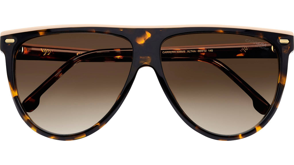 Occhiali da sole Carrera 3055/S XLT HA donna con montatura rettangolare in acetato avana beige e lenti demo. Occhiali da sole Carrera per donna, con design classico e un twist Carrera. Si distinguono grazie alla silhouette flat-top, anche con inserto a contrasto sul profilo superiore. I rivetti in metallo donano luce, la “C” in rilievo sulle aste è subito riconoscibile. Le lenti aviator sono sfumate, disponibili anche polarizzate. Linea: Signature. Codice modello: 207948. Codice colore: XLT HA. Rivenditore autorizzato Carrera online. Gli occhiali vengono consegnati con custodia e accessori originali e sono coperti dalla garanzia ufficiale di 12 mesi del produttore.