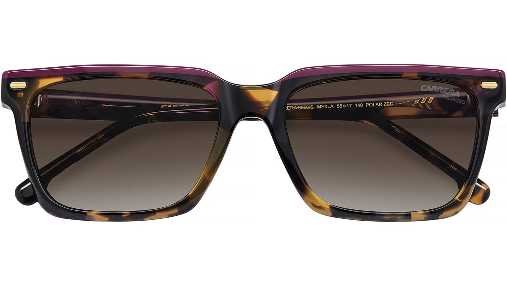 Occhiali da sole Carrera 3056/S MFX LA donna con montatura rettangolare in acetato avana prugna e lenti demo. Un occhiale da sole Carrera per lei, che è sempre ideale. Il frontale rettangolare è un classico dell’eyewear, ovviamente rivisitato in chiave Carrera. Notevole la versione con brow bar a contrasto che, posizionata sopra il frontale, prosegue sulle aste. Non mancano i dettagli metallici: i rivetti e la “C” Carrera - gioielli che celebrano il brand. Linea: Signature. Codice modello: 207949. Codice colore: MFX LA. Rivenditore autorizzato Carrera online. Gli occhiali vengono consegnati con custodia e accessori originali e sono coperti dalla garanzia ufficiale di 12 mesi del produttore.