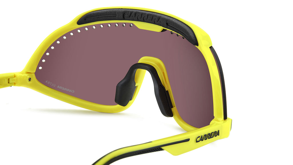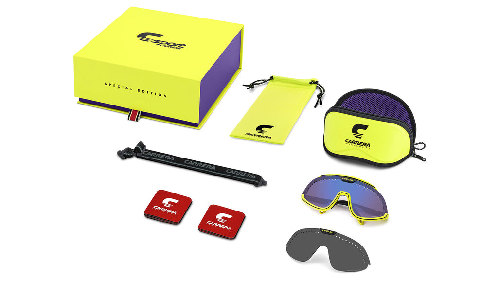 Occhiali da sole Carrera C SPORT 01/S 4CW ZS uomo con montatura mascherina in Injected giallo nero e lenti demo. I collezionisti non si lasciano sfuggire un occhiale da sole sportivi Carrera in edizione speciale. La maschera con fori di ventilazione arriva dall’archivio Carrera, oggi più che mai contemporanea. Include due lenti intercambiabili, dal diverso colore e grado di protezione. Il sistema di cambio lente con clip magnetiche è un brevetto Carrera. Il cordino elastico removibile è un ulteriore elemento estetico e pratico insieme. Linea: Sport. Codice modello: 207990. Codice colore: 4CW ZS. Rivenditore autorizzato Carrera online. Gli occhiali vengono consegnati con custodia e accessori originali e sono coperti dalla garanzia ufficiale di 12 mesi del produttore.