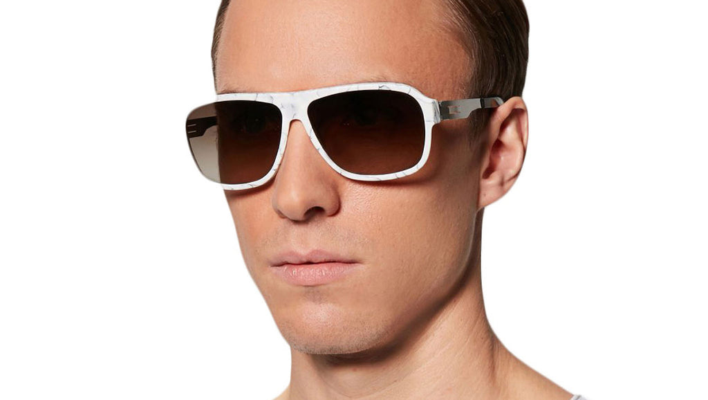 Occhiali da sole ic! berlin uomo modello Power Law A0557 con montatura navigator full-rim in acetato marmo bianco grezzo e lenti color grigio sfumato. Codice Brand: A0557. Codice colore: 310. Rivenditore autorizzato ic! berlin online. Gli occhiali vengono consegnati con custodia e accessori originali e sono coperti da garanzia standard di 12 mesi del produttore.