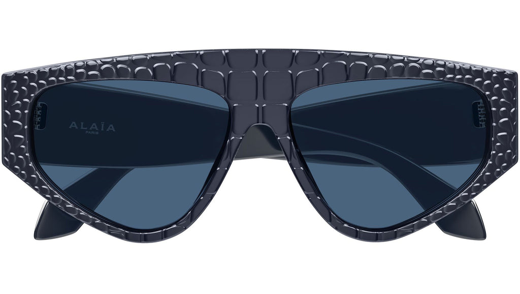 Occhiali da sole Azzedine Alaïa AA0097S 004 donna con montatura geometrica in acetato riciclato blu scuro solido lucido con texture coccodrillo e lenti blu tinta unita. Linea: Azzedine Alaïa. Codice modello: AA0097S. Codice colore: 004. Made in Japan. Rivenditore autorizzato Azzedine Alaïa online. Gli occhiali vengono consegnati con custodia e accessori originali e sono coperti dalla garanzia ufficiale di 12 mesi del produttore.