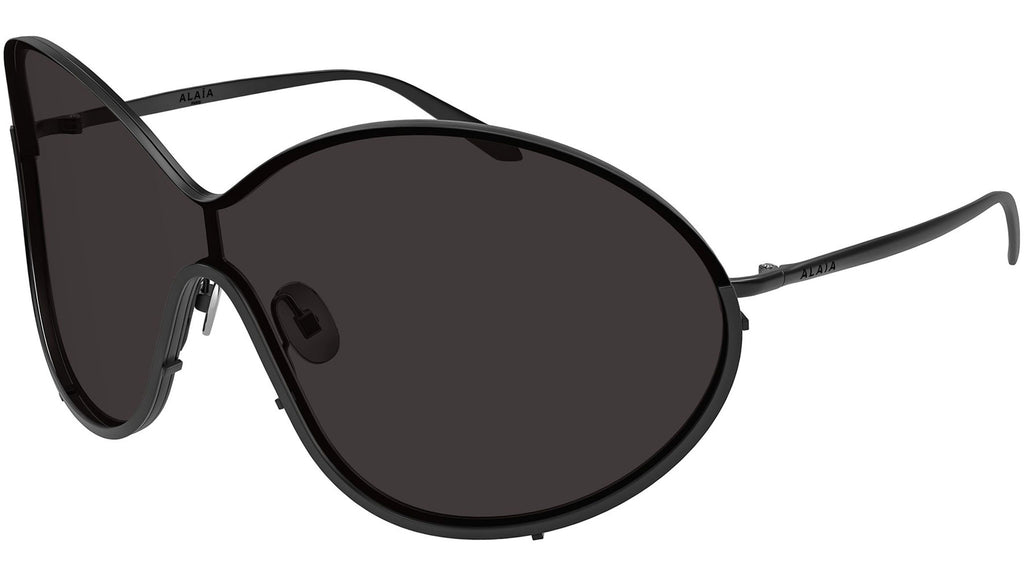 Occhiali da sole Azzedine Alaïa AA0100S 001 donna con montatura mascherina in metallo nero opaco e lenti grigio tinta con mask cilindrica. Linea: Azzedine Alaïa. Codice modello: AA0100S. Codice colore: 001. Made in Italy. Rivenditore autorizzato Azzedine Alaïa online. Gli occhiali vengono consegnati con custodia e accessori originali e sono coperti dalla garanzia ufficiale di 12 mesi del produttore.