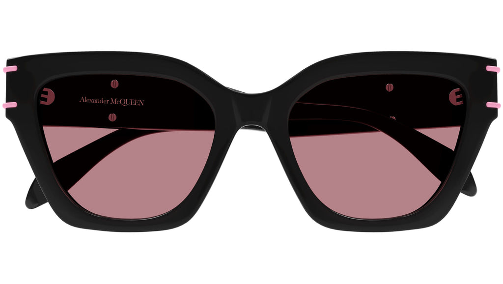 Occhiali da sole Alexander McQueen linea Casual Lines modello AM0398S variante colore 003 nero lucido tinta unita con lenti color ciclamino tinta unita.