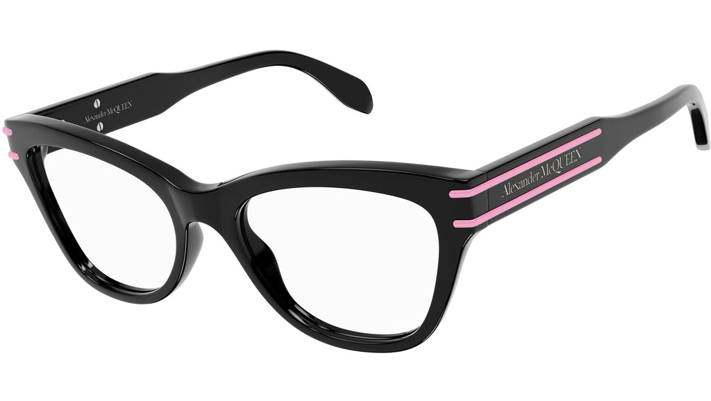 Occhiali da vista Alexander McQueen linea Casual Lines modello AM0401O variante colore 003 nero lucido tinta unita con astine color nero.