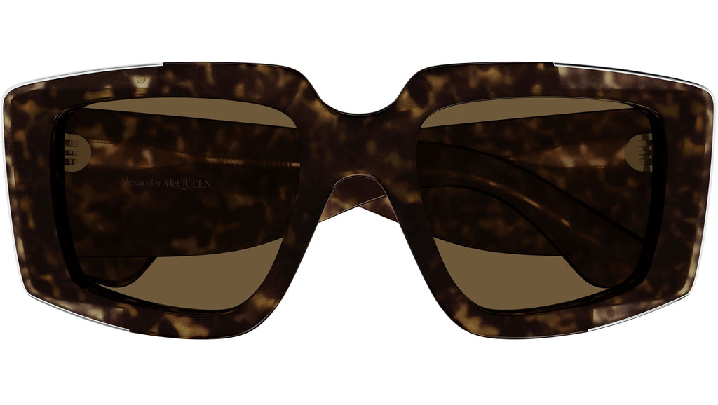 Occhiali da sole Alexander McQueen Icons modello AM0446S geometric in acetato riciclato codice colore 002 tartaruga scuro lucido con aste tartaruga e lenti color beige nicotine tinta unita.