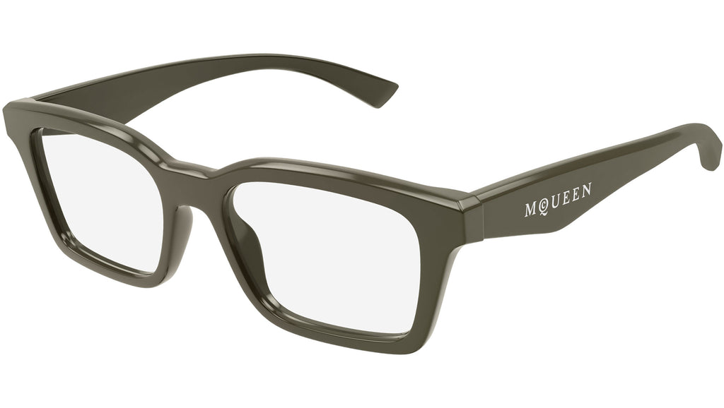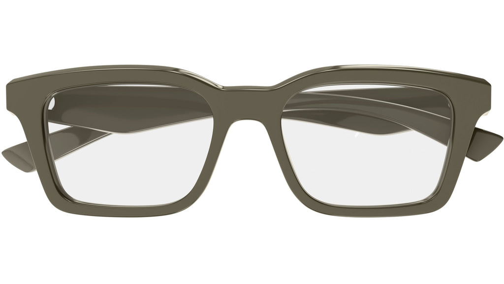 Occhiali da vista Alexander McQueen Casual Lines modello AM0476O in acetato riciclato rettangolare codice colore 005 tortora tinta unita lucido con aste marrone e lenti demo. Rivenditore autorizzato Alexander McQueen online. Gli occhiali vengono consegnati con custodia e accessori originali e sono coperti dalla garanzia ufficiale di 12 mesi del produttore.