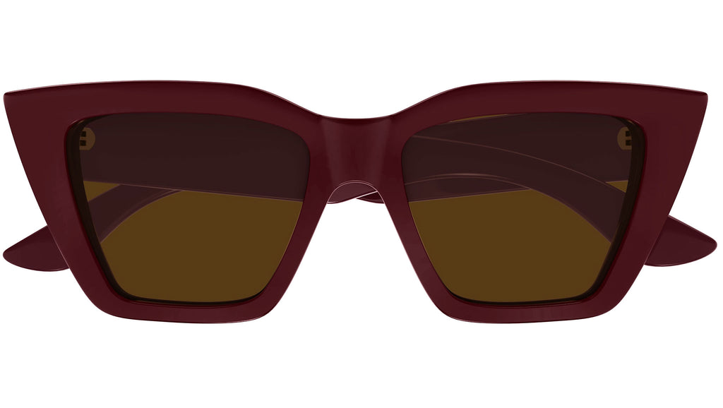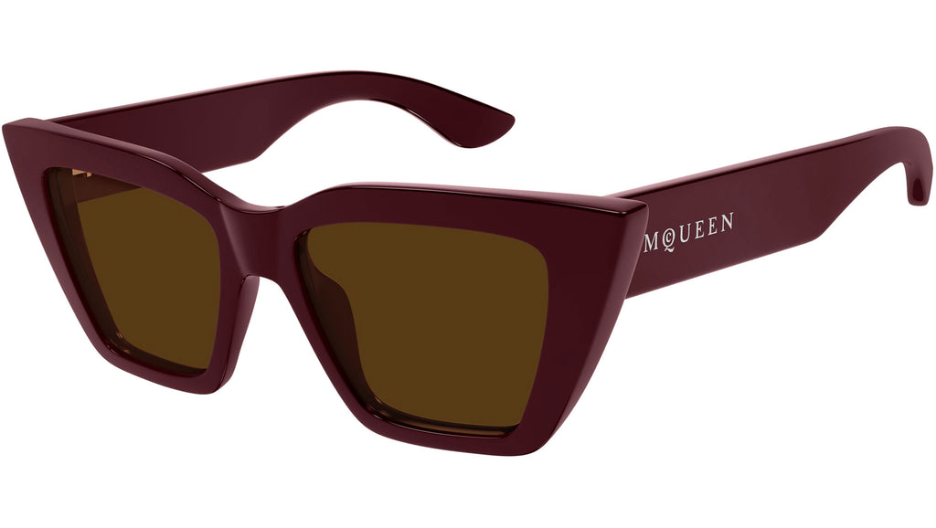 Occhiali da sole Alexander McQueen Logo modello AM0507S in acetato riciclato cat eye codice colore 003 bordeaux tinta unita lucido con aste bordeaux e lenti color marrone tinta unita. Rivenditore autorizzato Alexander McQueen online. Gli occhiali vengono consegnati con custodia e accessori originali e sono coperti dalla garanzia ufficiale di 12 mesi del produttore.