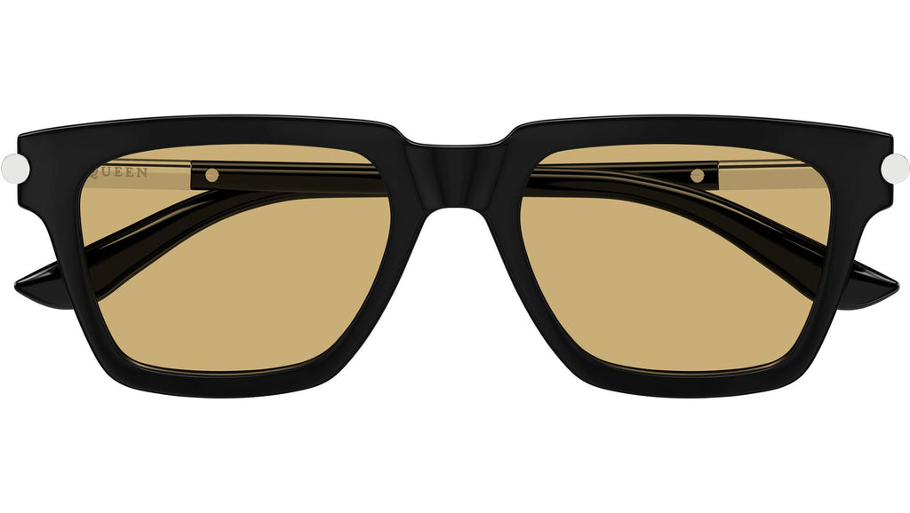 Occhiali da sole Alexander McQueen T-Bar modello AM0519S in acetato riciclato rettangolari codice colore 003 nero lucido tinta unita con aste oro e lenti color beige nicotine tinta unita. Rivenditore autorizzato Alexander McQueen online. Gli occhiali vengono consegnati con custodia e accessori originali e sono coperti dalla garanzia ufficiale di 12 mesi del produttore.