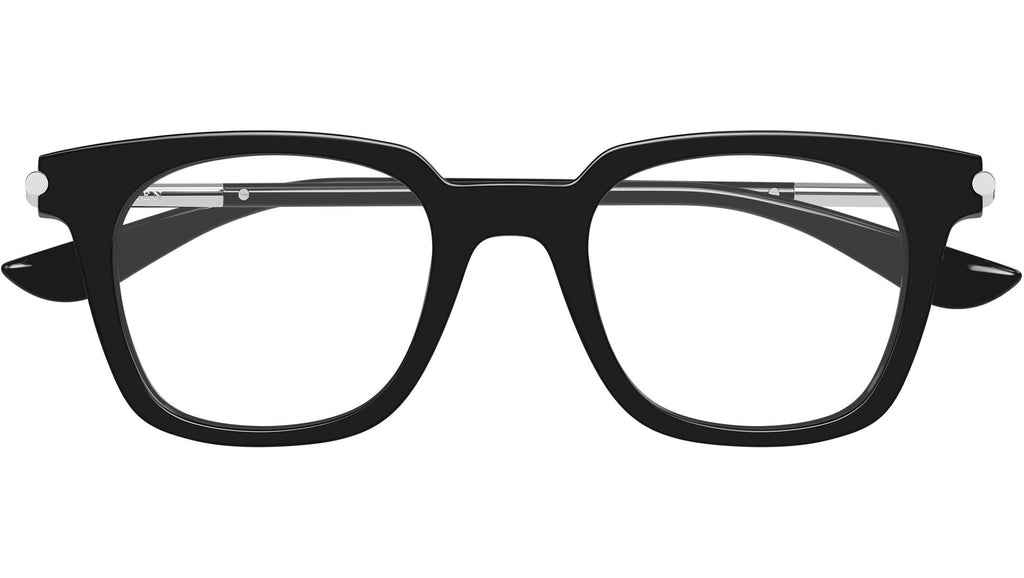 Occhiali da sole Alexander McQueen T-Bar modello AM0521O in acetato riciclato rettangolari codice colore 001 nero lucido tinta unita con aste argento e lenti color lenti demo. Rivenditore autorizzato Alexander McQueen online. Gli occhiali vengono consegnati con custodia e accessori originali e sono coperti dalla garanzia ufficiale di 12 mesi del produttore.