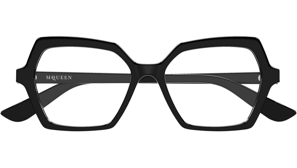 Occhiali da vista Alexander McQueen Logo modello AM0537O in acetato riciclato geometrici codice colore 001 nero lucido tinta unita con aste nero e lenti demo. Rivenditore autorizzato Alexander McQueen online. Gli occhiali vengono consegnati con custodia e accessori originali e sono coperti dalla garanzia ufficiale di 12 mesi del produttore.