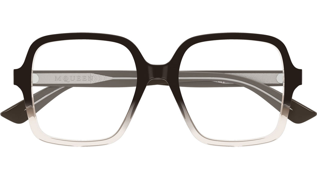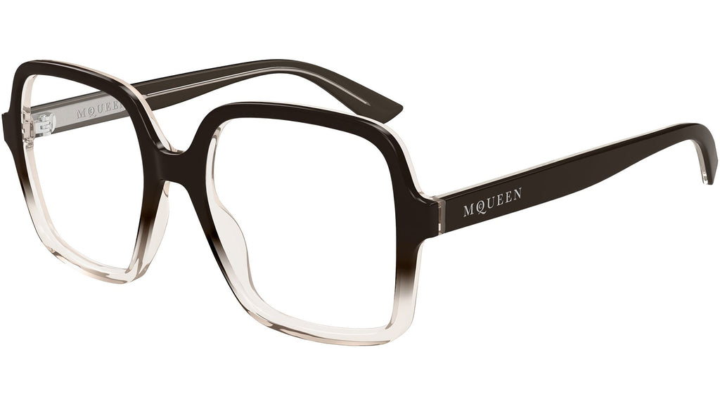Occhiali da vista Alexander McQueen Logo modello AM0538O in acetato riciclato rettangolari codice colore 006 marrone lucido sfumato con aste marrone e lenti demo. Rivenditore autorizzato Alexander McQueen online. Gli occhiali vengono consegnati con custodia e accessori originali e sono coperti dalla garanzia ufficiale di 12 mesi del produttore.