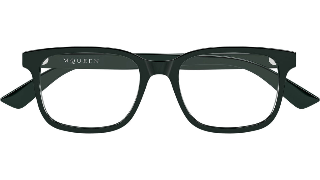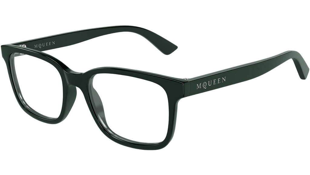 Occhiali da vista Alexander McQueen Logo modello AM0541O in acetato riciclato rettangolari codice colore 009 verde scuro tinta unita lucido con aste verde e lenti demo. Rivenditore autorizzato Alexander McQueen online. Gli occhiali vengono consegnati con custodia e accessori originali e sono coperti dalla garanzia ufficiale di 12 mesi del produttore.