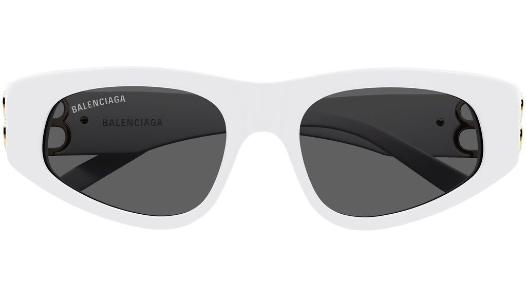 Occhiali da sole Balenciaga linea Everyday BB0095S codice colore 012 con montatura bianco tinta unita lucido e lenti color grigio tinta unita.