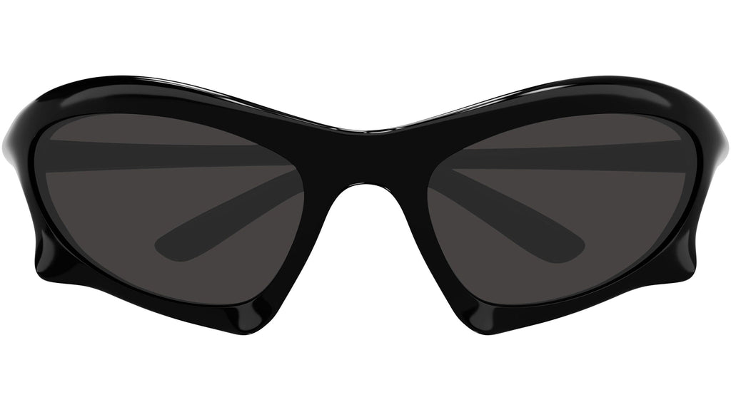 Occhiali da sole Balenciaga linea Extreme BB0229S codice colore 001 con montatura nero lucido e lenti color grigio tinta unita.