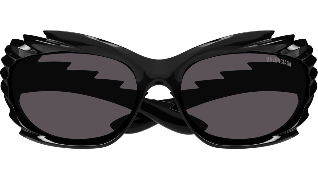 Occhiali da sole Balenciaga linea Extreme BB0255S codice colore 001 con montatura nero lucido e lenti color grigio fumo tinta unita.