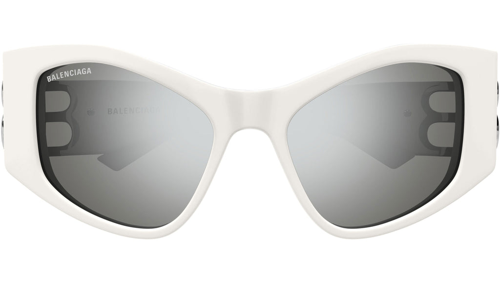 Occhiali da sole Balenciaga modello BB0287S linea Everyday codice colore 006 avorio tinta unita lucido in acetato riciclato forma cat eye con lenti color argento + grigio tinta unita.