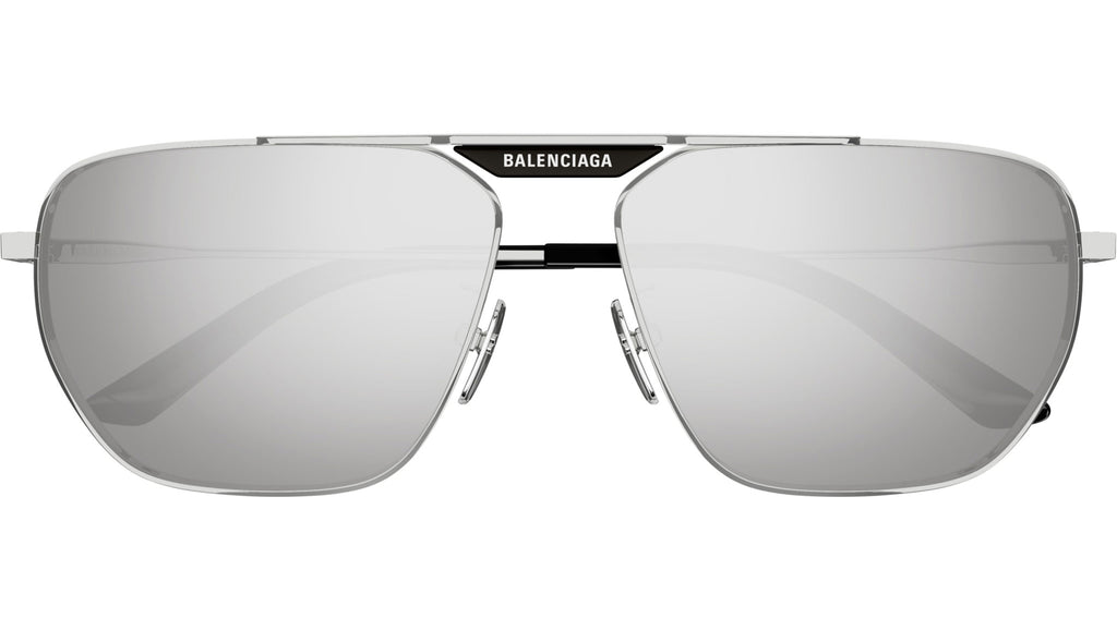 Occhiali da sole Balenciaga modello BB0298SA linea Everyday codice colore 002 argento lucido in metallo forma rectangle con lenti color grigio tinta unita + specchio argento super forte.