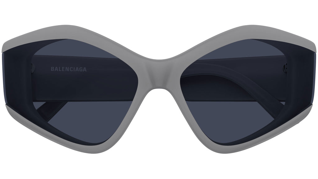 Occhiali da sole Balenciaga modello BB0302S linea Everyday codice colore 003 grigio tinta unita lucido in acetato riciclato forma geometric con lenti color blu tinta unita.