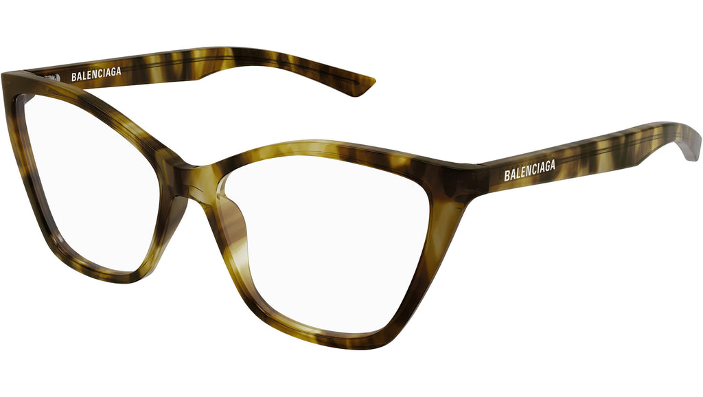 Occhiali da vista Balenciaga BB0405O 003 donna con montatura butterfly in acetato riciclato avana verde lucido e lenti demo. Linea: Everyday. Codice modello: BB0405O. Codice colore: 003. Made in Italy. Rivenditore autorizzato Balenciaga online. Gli occhiali vengono consegnati con custodia e accessori originali e sono coperti dalla garanzia ufficiale di 12 mesi del produttore.