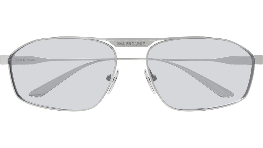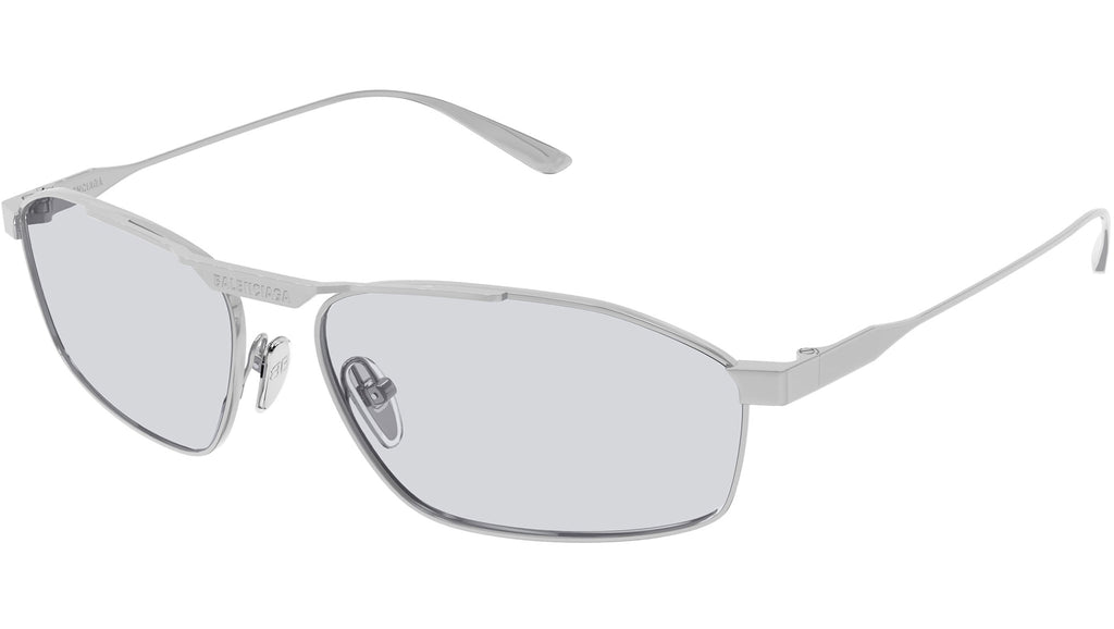 Occhiali da sole Balenciaga BB0416S 004 uomo con montatura aviatore in metallo argento opaco e lenti grigio chiaro tinta unita. Linea: Everyday. Codice modello: BB0416S. Codice colore: 004. Made in Japan. Rivenditore autorizzato Balenciaga online. Gli occhiali vengono consegnati con custodia e accessori originali e sono coperti dalla garanzia ufficiale di 12 mesi del produttore.