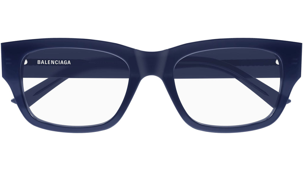 Occhiali da vista Balenciaga BB0450O 004 uomo con montatura rettangolare in acetato riciclato blu scuro opalino lucido e lenti demo. Linea: Everyday. Codice modello: BB0450O. Codice colore: 004. Made in Italy. Rivenditore autorizzato Balenciaga online. Gli occhiali vengono consegnati con custodia e accessori originali e sono coperti dalla garanzia ufficiale di 12 mesi del produttore.