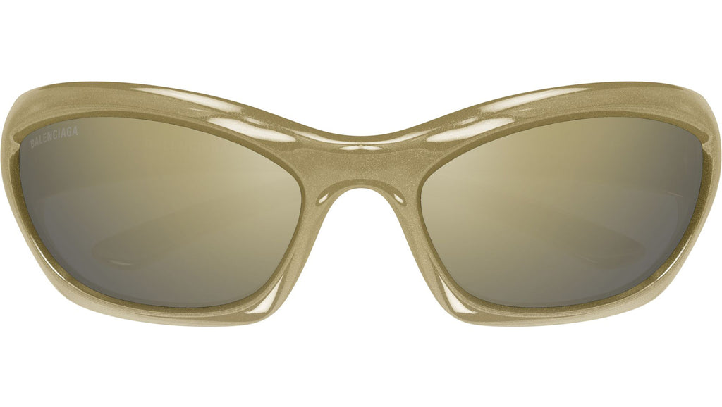 Occhiali da sole Balenciaga BB0463S 002 unisex con montatura geometrica in inietatto verde fango effetto super metallico lucido e lenti fumo solido + flash bronzo. Linea: Extreme. Codice modello: BB0463S. Codice colore: 002. Made in Italy. Rivenditore autorizzato Balenciaga online. Gli occhiali vengono consegnati con custodia e accessori originali e sono coperti dalla garanzia ufficiale di 12 mesi del produttore.
