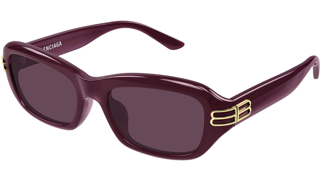 Occhiali da sole Balenciaga BB0471SK 004 donna con montatura rettangolare in acetato riciclato borgogna opalino lucido e lenti viola scuro solido. Linea: Everyday. Codice modello: BB0471SK. Codice colore: 004. Made in Japan. Rivenditore autorizzato Balenciaga online. Gli occhiali vengono consegnati con custodia e accessori originali e sono coperti dalla garanzia ufficiale di 12 mesi del produttore.
