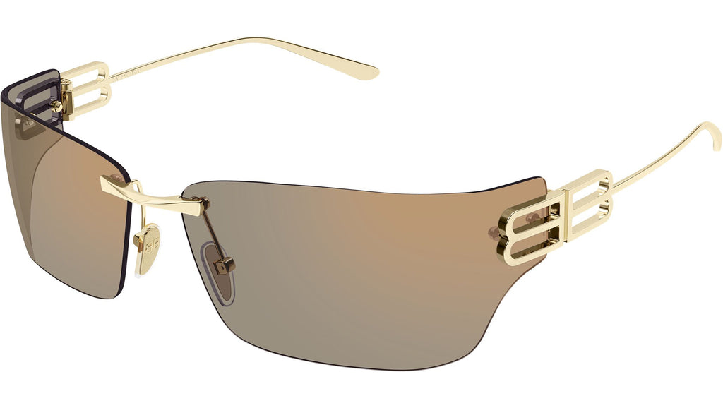 Occhiali da sole Balenciaga BB0485SA 002 unisex con montatura rettangolare in metallo oro chiaro lucido e lenti marrone solido con flash rosa maschera. Linea: Everyday. Codice modello: BB0485SA. Codice colore: 002. Made in Japan. Rivenditore autorizzato Balenciaga online. Gli occhiali vengono consegnati con custodia e accessori originali e sono coperti dalla garanzia ufficiale di 12 mesi del produttore.