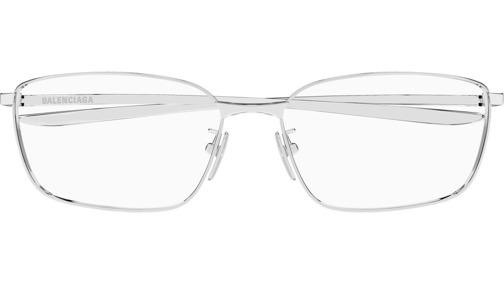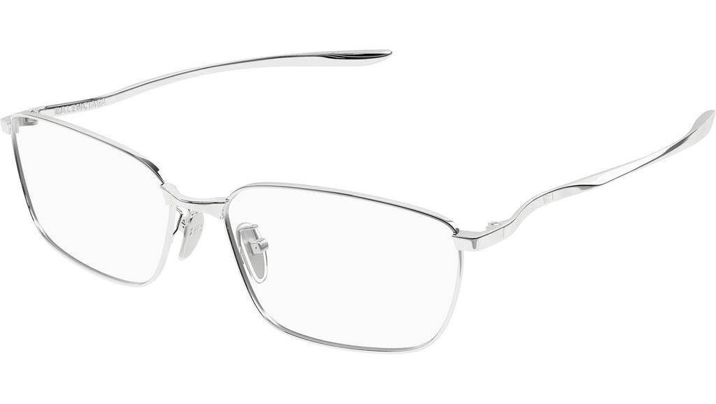 Occhiali da vista Balenciaga BB0497OA 001 uomo con montatura rettangolare in metallo argento lucido e lenti demo. Linea: Everyday. Codice modello: BB0497OA. Codice colore: 001. Made in Italy. Rivenditore autorizzato Balenciaga online. Gli occhiali vengono consegnati con custodia e accessori originali e sono coperti dalla garanzia ufficiale di 12 mesi del produttore.